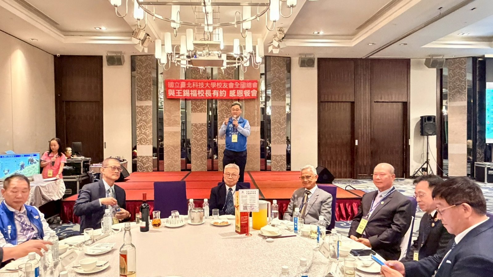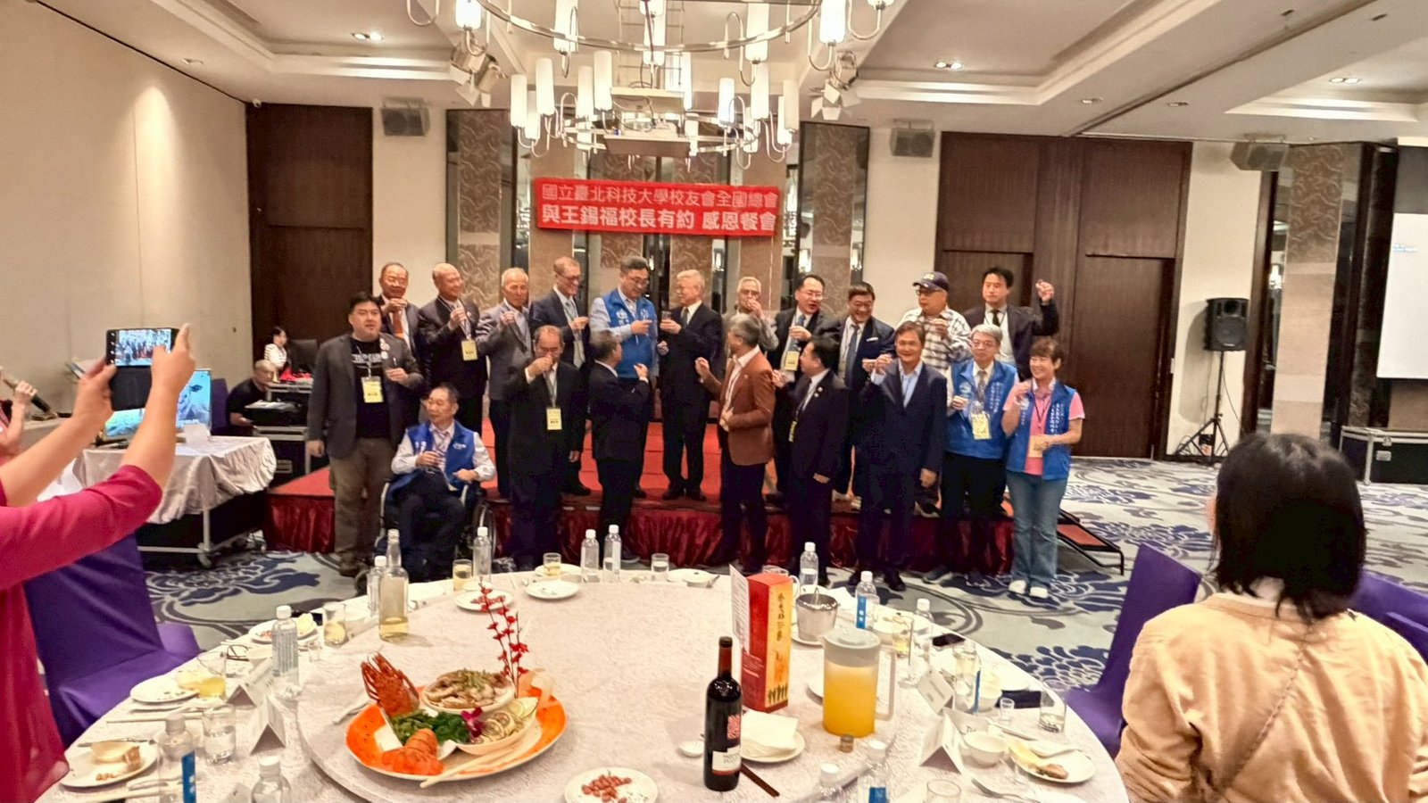 在校友總會第五次理監事聯席會結束後,全體移駕至芙洛麗飯店五樓的大宴會廳,廳內燈光暖黃、氣氛溫馨。期待著這場意義非凡的盛會「與王錫福校長有約感恩餐會」。雖距王校長115年1月31日的卸任,還有兩個多月,但校友總會決定提前舉辦這場餐會。這份感謝,不必等到最後一天。主持人以溫暖的聲音開場,迎接總會長、校長、貴賓與來自各地的校友們。今晚,不是告別,而是一場屬於北科人的相聚。