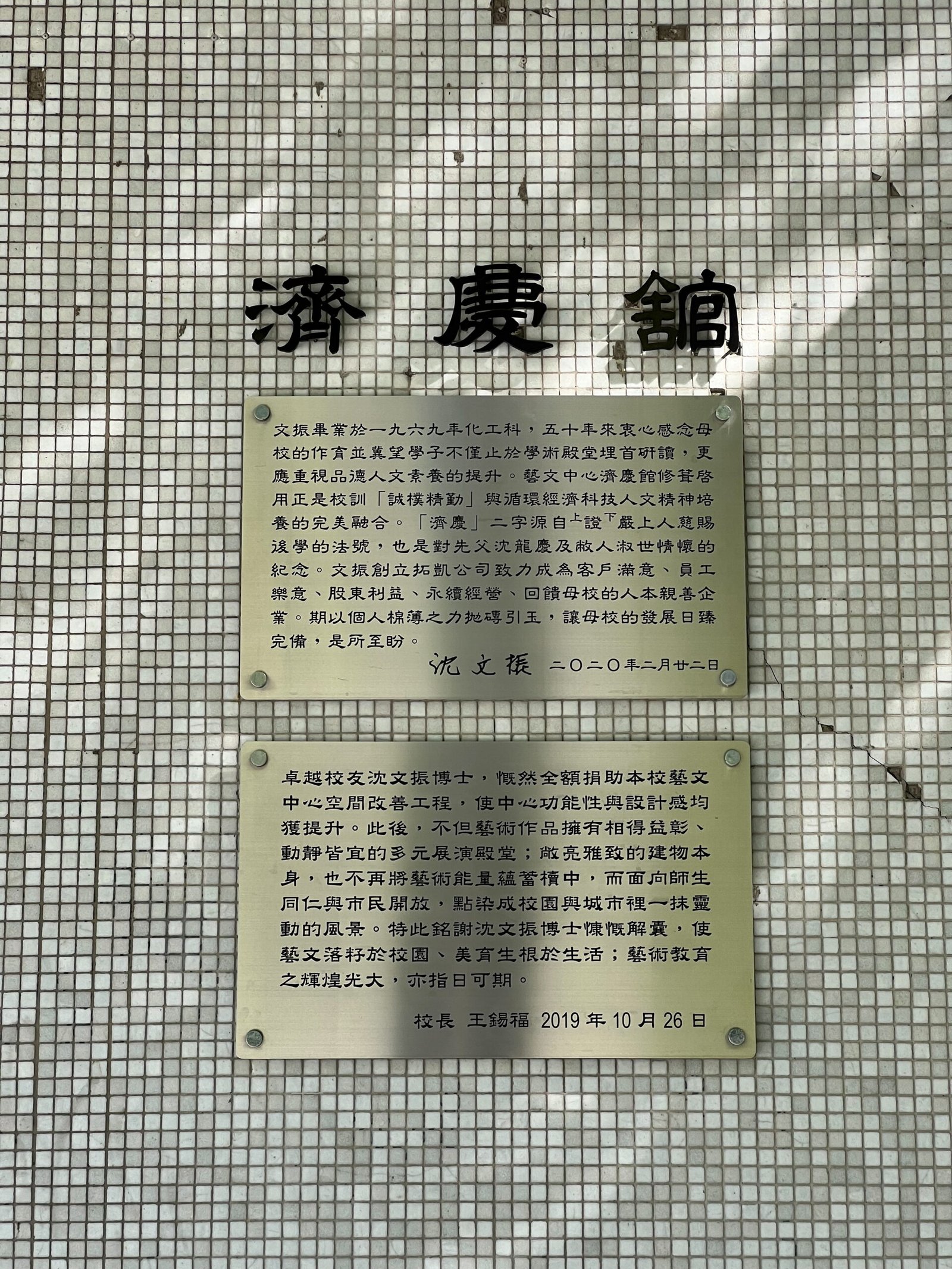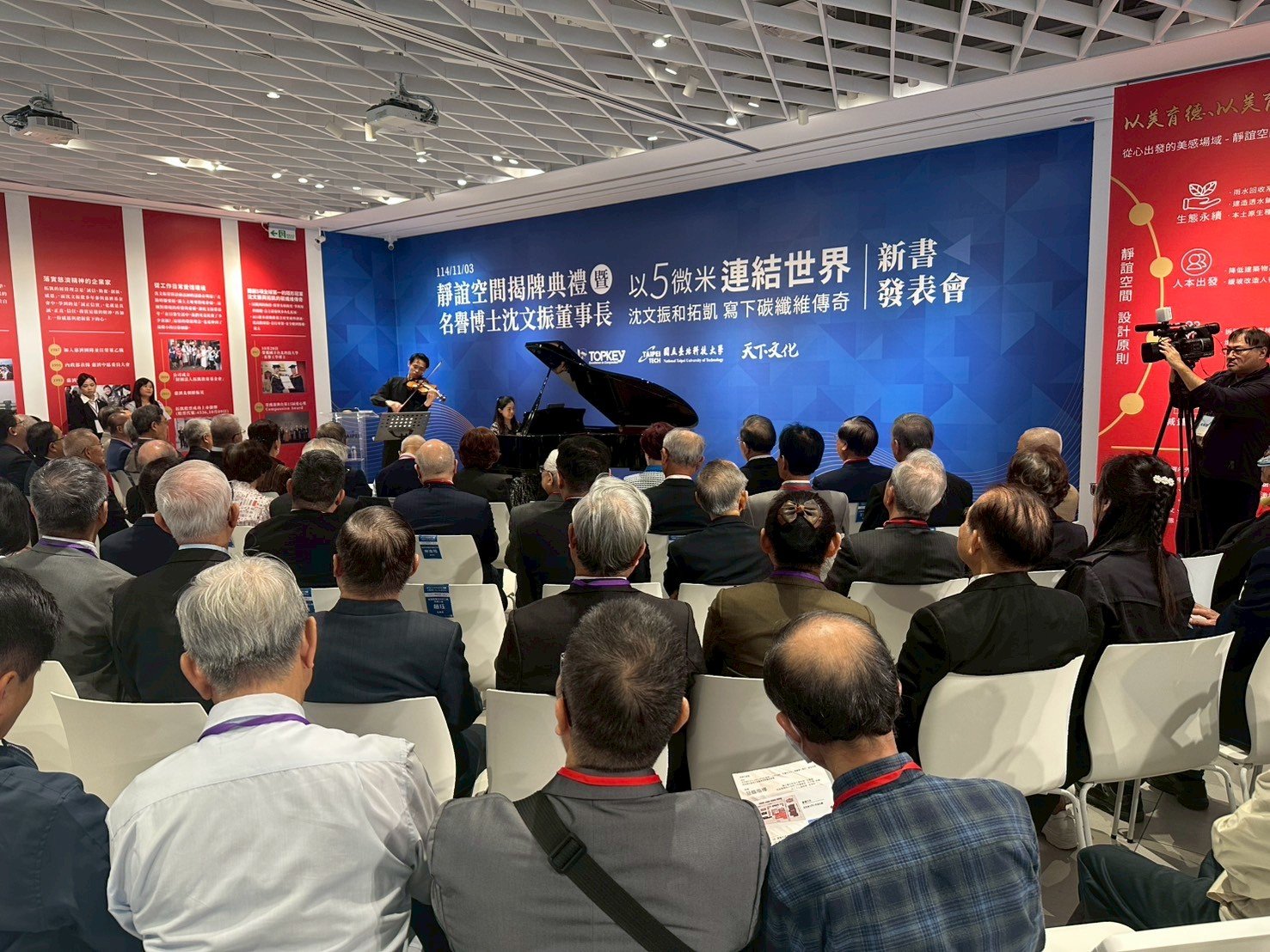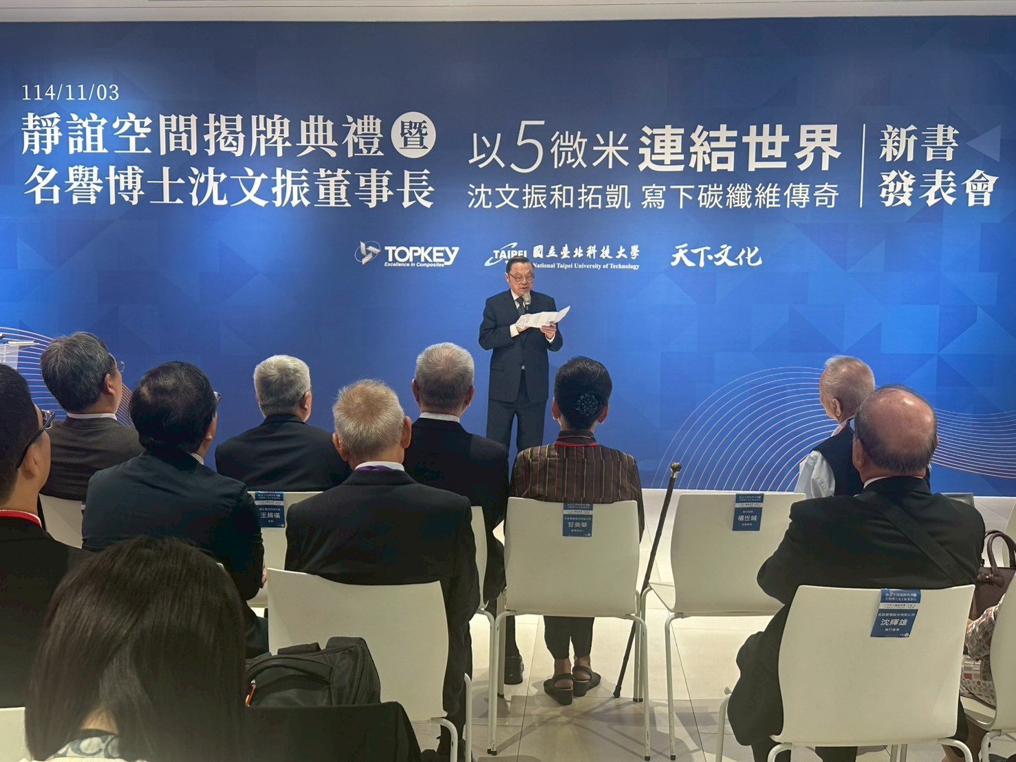 活動 2025 年 11 月 4 日 沈文振學長伉儷捐資「靜誼空間」啟用誌記時間:11月3日(一)上午10:00地點:北科大藝文中心 (濟慶館)圖文/校友聯絡中心提供 產業推手編輯部整理從心出發的美感場域【以美育德、以美育人】11 月 3 日上午,北科大濟慶館在弦樂與鋼琴悠揚樂聲中迎來「靜誼空間」啟用儀式。這座見證三十年歷史的人行通道,在沈文振董事長與夫人甘美華女士的慷慨捐資下,蛻變為融合自然、生態與人文的美感場域,同時也象徵北科大美學教育與永續校園的新頁正式展開。儀式當日亦同步舉行沈文振學長《以5微米連結世界》新書發表會,使空間啟用與生命故事相互呼應,展現美育、價值與教育三者的深度連結。揭牌典禮貴賓雲集,行政院前政務委員楊世緘、中研院院士曾志朗、台塑前董事長林健男、天下文化總編輯李桂芬、北科大校友總會總會長張山立等人,齊聚見證北科大校園美學新頁的開啟。靜與誼:源自法號的一份祝福「靜誼」其名源自上證下嚴上人,慈賜甘美華女士的法號,寓意「寧靜致遠、人和良善圓滿」。沈文振董事長伉儷以此命名,是對夫人的致敬,也是將祝福深植於母校土地之中,期待北科大學子在日常行走間,能於此靜心場域中感受美好、涵養品德。卓越校友沈文振名譽博士,1969年畢業於化工科,與此相映的「濟慶館」則取自沈董事長的法號,使兩座空間彼此呼應,成為北科大最具象徵性的精神綠軸。三十年的通道迎來美學重生靜誼空間前身為共同科館與第三教學大樓間的「陽光中庭」通道,民國 80 年落成後雖曾局部翻修,整體景觀與動線卻未全面更新。多年來,這裡連結著校園南側的重要動線,也承載著無數北科人的記憶。為配合校園永續願景,王錫福校長將此區列為改善重點,並在沈董事長的全額捐資下,讓整建計畫得以實現。靜誼空間設計原則:由本校校友會全國總會王小瀋前總會長及建築系陳振誠主任領隊,以靜誼空間的過去歷程、現在完工的設計理念及靜誼空間的想望,讓社會更認識國立臺北科技大學。生態永續:雨水回收系統、建造透水鋪面、本土原生種植栽人本出發:降低建築物高差、緩坡改造人行動線社區共榮:拆除景觀座椅、增築人行步道、改善校內與人行道落差減量設計:多餘設施拆除、草地取代灌木叢、建置玻璃欄杆濟慶館與十二甲講堂:北科藝文能量全面升級除靜誼空間外,沈董事長伉儷亦捐助濟慶館與十二甲講堂整建,使北科藝文軸線更具完整性。濟慶館角色:藝術交流平台:打造校園內外藝術交流與對話的核心場域。美學教育推廣:將人文美學融入學習,培養學生藝術涵養。多元展演空間:提供展覽、表演與創作發表的舞台,激發創意能量。跨域融合願景:結合人文、科技與美學,打造豐富多元的藝文生態。十二甲講堂角色:人文核心教育:以人文為本,培養學生審美素養與文化底蘊,展現創意與實踐成果。多功能藝文場域:象徵北科百年與都市共融,作為展演、講堂與活動交流空間。創新人才培育:以文化場域實踐,打造美學教育與人才培育的實驗型人文空間。新書發表:從「牛背上的孩子」到「5 微米的世界」王錫福校長致詞指出,北科大長期以理工聞名,而靜誼空間的落成,讓校園在人文關懷、美感教育及綠色永續上更臻完整。「讓學生學會欣賞、學會尊重、學會反思,才能兼具理性與感性。」校長表示,這正是本次改造的核心精神。其後,張山立總會長、曾志明、楊世緘等貴賓逐一致詞,肯定沈董事長的公益精神與對教育的影響。新書發表會中,沈文振董事長分享童年牽牛、被鄰居投訴的往事,從長輩的一句提醒中領悟人生善念與責任。他說:「觀念的分享,就是行善。」這本書正是他多年經營企業後的反思與期盼。天下文化總編輯李桂芬也從出版角度談起,表示沈董事長的故事展現臺灣技職教育精神:「勤奮、誠信、創新、感恩。」在校長與董事長的共同揭幕下,新書正式亮相,象徵北科大人文能量的再提升。導覽與茶敘:走入北科的文化綠軸由王小瀋前總會長介紹靜誼空間整建歷程;王怡惠院長則以人文藝術角度說明藝文中心、十二甲講堂與靜誼空間的整合願景,並點出其對校園與社會的文化價值。隨後賓客移步至靜誼空間紀念碑前揭幕。啟用後,再由王小瀋前總會長與建築系陳振誠主任帶領導覽,從舊通道的前世,到綠軸的今生,賓客感受到北科大在美感教育上的深刻轉變。茶敘交流中,師生與校友漫步於新完工的靜誼空間,彷彿看見北科大理工之外更溫柔、更具文化厚度的另一面。讓美育在北科發芽、成長、開花靜誼空間是沈文振董事長伉儷送給母校的一份禮物,更是北科大教育理念的延伸,美育不是附加品,而是培養公民素養的重要力量。北科大正從技術殿堂走向兼具理性與感性的現代大學;從機能校園走向美感與人文共生的幸福場域。靜誼綻放,美感啟程,而北科大的故事,也將在這片場域中繼續向前。 分享