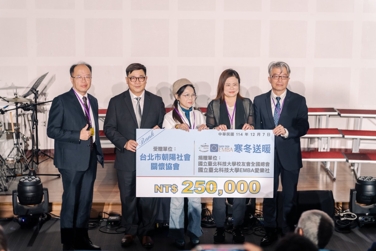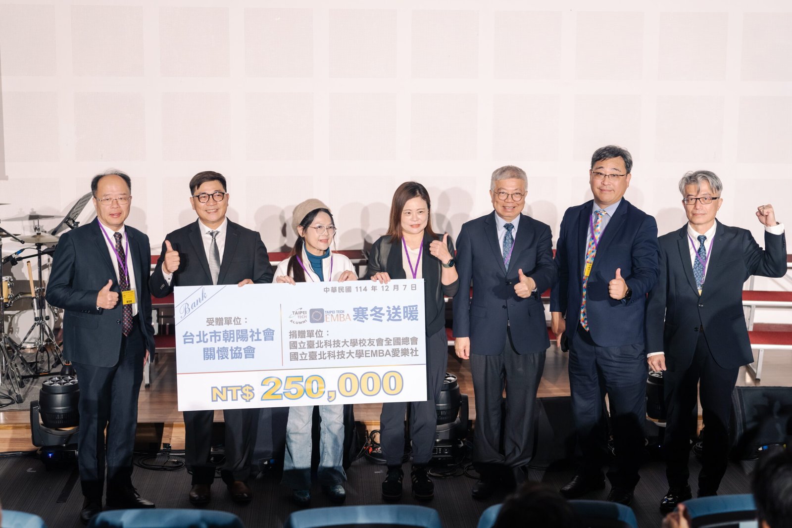 活動 2025 年 12 月 11 日 琴瑟澄寰宇、弦歌啟明心EMBA慈善音樂會時間:114年12月7日(星期日)14:30地點:宏裕科技大樓B1 國際會議廳圖文/產業推手編輯部整理以音樂寫愛,以行動寫光完成了櫻花林揭牌儀式後,全體與會者移駕到國際會議中心。在冬日的臺北午後,一場結合音樂與公益的盛會,在宏裕科技大樓正式揭幕。這場由國立臺北科技大學校友總會與管理學院 EMBA 愛樂社共同舉辦的慈善音樂會,以「琴瑟澄寰宇、弦歌啟明心」為名,寓意以音符連結世界、以歌聲照亮人心,如歲末時分升起的一盞亮光。音樂為名,公益為心音樂會第一階段主軸,也是本次活動最重要的精神「在寒冬送暖,用音樂傳遞善意。」由張山立總會長首先上台,肯定EMBA愛樂社,長期以來以歌聲服務社會的精神。他表示,北科校友不僅在專業領域表現亮眼,更懂得以自身的力量回饋地方,這份持續的公益能量,是北科最難得的資產。本次同時也響應學校「敦親睦鄰」方案,捐助了周邊三個鄰里,包括:梅花里、埤頭里、民輝里低收里民共10位,合計新台幣20萬元,在歲末送出溫暖。接著王錫福校長上台致詞,對校友總會與管理學院的共同籌辦表達肯定。校長提到,藝術與管理表面上看似不同領域,但其核心都在於「人」理解人、陪伴人、成就人,而音樂是最能觸動人心的語言。從管理精神到人文美學管理學院范書愷院長在致詞中,為「琴瑟澄寰宇、弦歌啟明心」作出深刻詮釋。他指出:琴瑟澄寰宇象徵管理學院期許EMBA學子,擁有開闊國際視野,立足寰宇;弦歌啟明心則代表領導者應具備明澈的人文素養,懂得用柔性力量影響世界。當音樂與管理交會,不再只是表演,而是一場更深層的自我對話。EMBA 執行長陳育威接續致詞,談到「善的循環」在EMBA中萌芽茁壯。他說:「今天的音樂會,是專業與愛的結合。當管理者願意同時擁抱效率與溫度,才能真正創造影響力。」這句話,也成了整場音樂會最核心的價值之一。公益時刻,化作陪伴的行動音樂會最重要的段落之一,是EMBA社會服務的捐贈儀式。在主持人引導下,蕭舒云主任秘書與郭昭巖議員上台,向觀眾介紹「朝陽社會關懷協會」長期投入的弱勢支持服務,從保暖衣物、營養食物包,到獨居長者定期訪視,每一項都是歲末最需要的力量。隨後,由范書愷院長、陳育威執行長、李書旭社長,代表EMBA愛樂社,捐贈 新臺幣25萬元 給協會,由郭昭巖議員代表接下。這段儀式不僅象徵著EMBA學長姐的溫度,也再次證明北科人的實際行動從不缺席。接著,張山立總會長、王錫福校長與多位貴賓上台合照,從舞台往觀眾席拍攝大合照,更象徵此時此刻的凝聚與共享。北科的聲音,溫柔又堅定在青年一代主持人113工管戴于淵、113北資財賴盈孜接棒後,音樂會正式進入最動人的階段。北科紅樓合唱團:用和聲描繪世界的輪廓北科紅樓合唱團以< Holy night >、< Perhaps Lov e>、< 一條日光大道 >、< I will follow him >等經典曲目開場,優雅和聲填滿整個會場,也為後續節目奠定質感。EMBA 114四系合唱團:學長姐的力量,用歌聲相挺接著由EMBA四系合唱團登場。他們演唱< 管院之歌 >、< 風箏 >、< 台灣的心跳聲 >等曲目,以自然情感與穩定音色,唱出屬於校友的團結。鋼琴獨奏者帶來古典與電影改編作品,使人彷彿置身劇院。烏克麗麗合奏:冬日最輕柔的旋律烏克麗麗組合< 我相信 >、< 小手拉大手 >、< 情非得已 >等曲,輕巧的跳動音符,讓會場多了幾分暖意與微笑。多層次的音樂風景而晚段的爵士鼓與吉他合奏,更讓整場音樂會轉為活力十足的節奏。包括:EMBA愛樂社前社長表演團體夢想家樂團OMC工管樂團恁祖母樂團多組樂手輪番上場,宛如一場小型冬日音樂節。頒發櫻花感謝狀:讓愛在校園裡發芽張山立總會長也於會中頒發櫻花感謝狀,感謝捐款支持校園「櫻花林景觀帶」建設的校友與企業。這片櫻花林象徵情誼與傳承,與今日慈善精神遙相呼應。音樂落下,但餘韻長存隨著最後一段器樂演奏結束,音樂會緩緩落幕。如果說公益是一條路,那音樂就是照亮這條路的光。北科EMBA用行動再次證明,領導者不只在職場中展現力量,也在社會中實踐溫度。更是校友總會與EMBA強強聯手的最佳展現。 分享