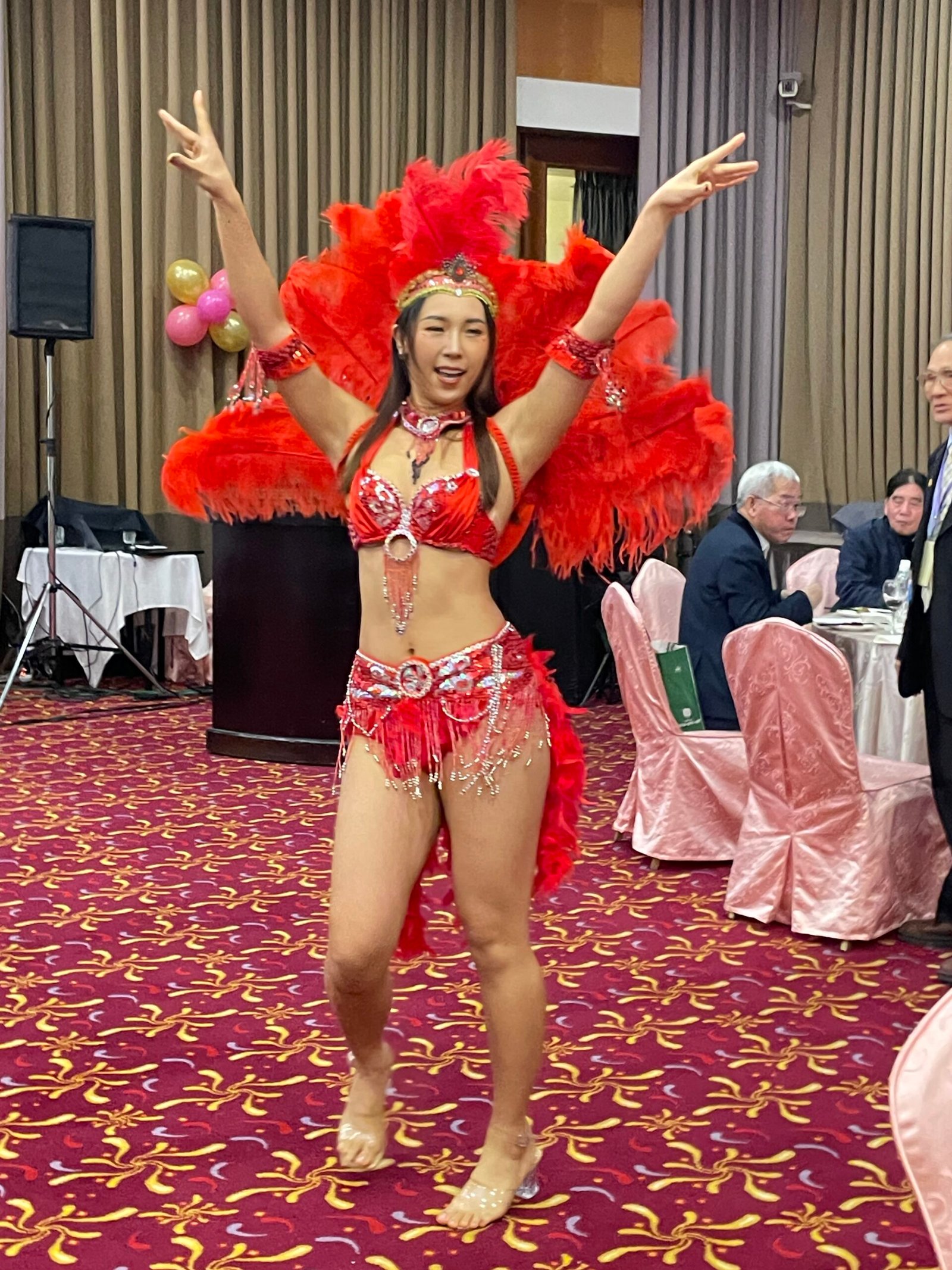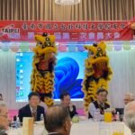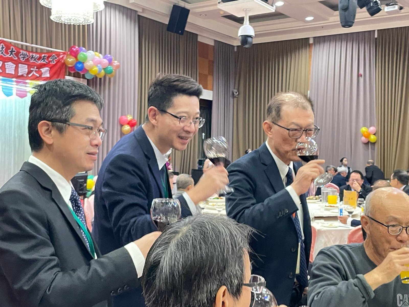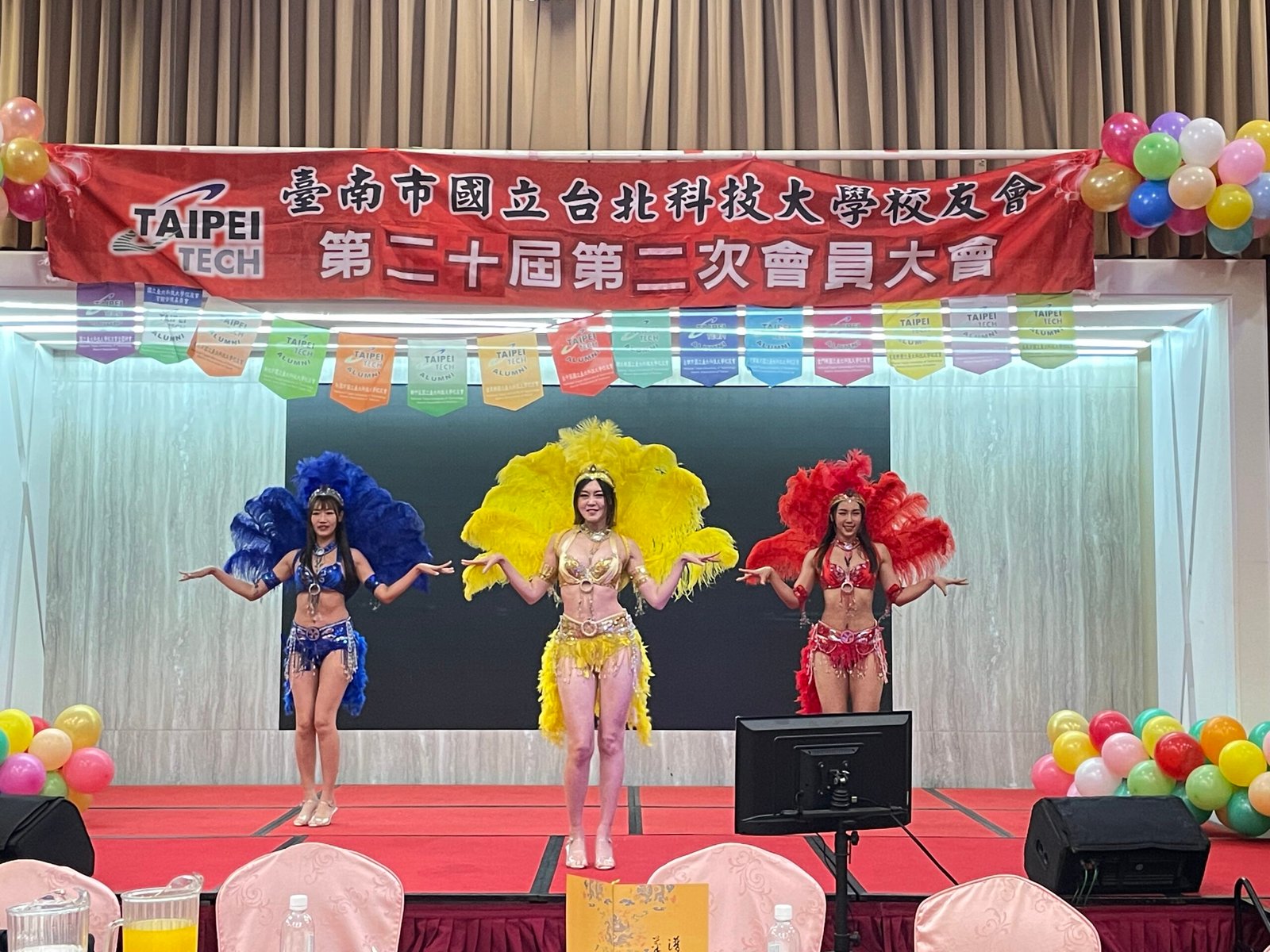 午宴正式揭幕,由台南德高國小鼓術團擔綱開場。該團隊連續15年榮獲台南市傳統藝術比賽冠軍,以磅礡鼓聲震撼全場,展現堅毅與團結的精神,博得滿堂彩。因應年節氣氛,主辦單位安排舞龍舞獅與財神爺繞場,校友們爭相合影,喜氣洋洋。節目高潮由周定邦校友帶來「台灣唸歌」演出,結合恆春民謠吟唱,別具特色,隨後森巴女郎與小喇叭演奏輪番登場,現場氣氛熱烈。