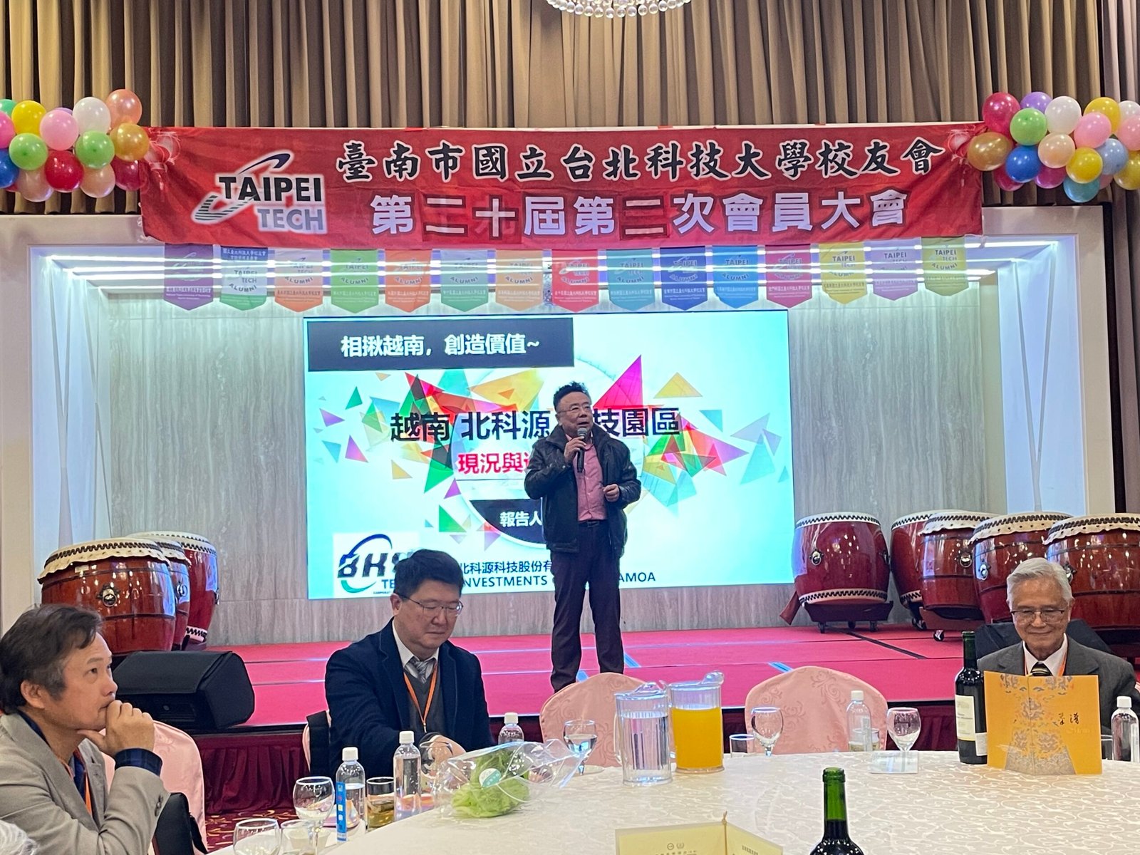 午宴開始前,特別安排「越南北科源科技園區」林世昌總經理進行專案報告,分享越南投資機會。他指出,近年越南工業快速升級,由組裝走向自製,電鍍與表面處理需求大增,加上政治穩定與環保政策日益嚴謹,對相關產業極具利基。這項跨校友會、跨專業的合作模式,展現校友回饋母校的共同初心。