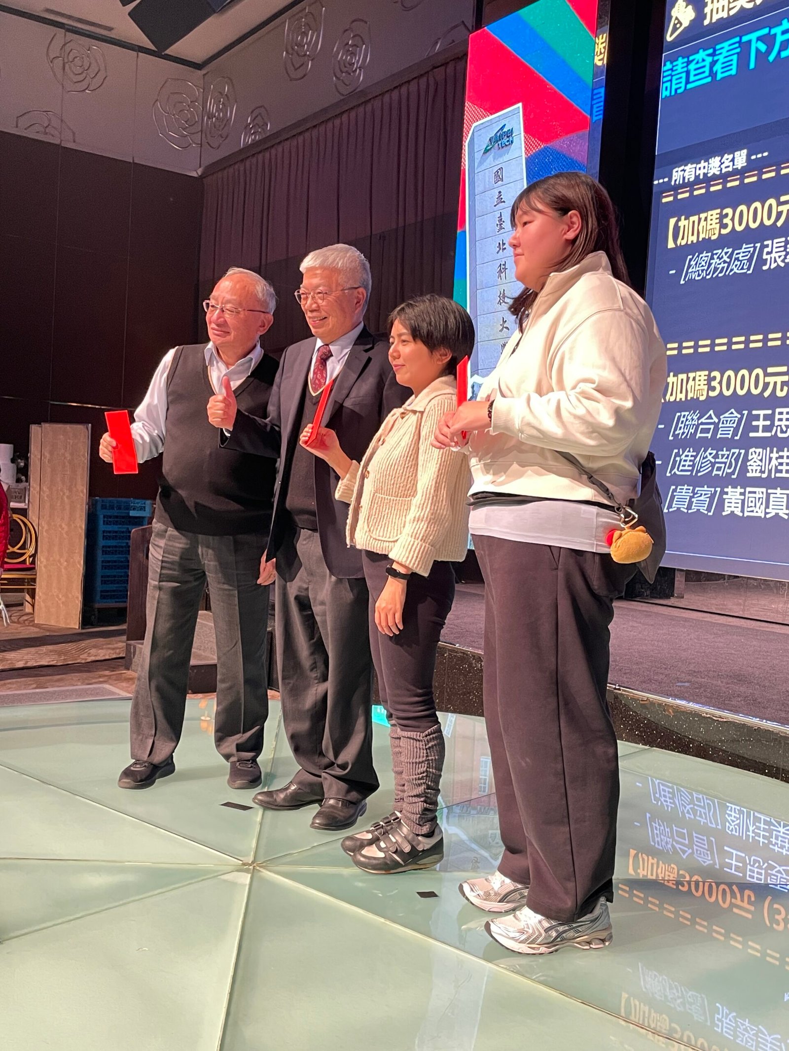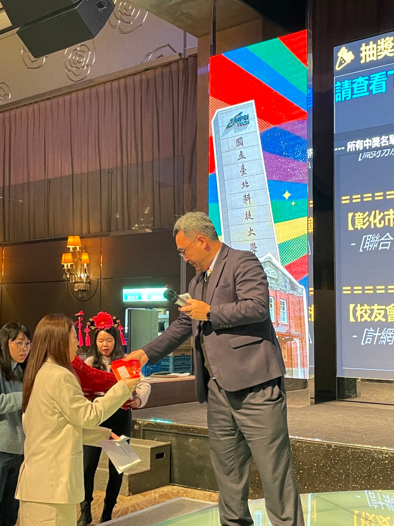 活動 2026 年 1 月 23 日 國立臺北科技大學 114年度行政單位尾牙 歲末同歡 風華再現 時間:115 年1月21日(星期三)18:30地點:大直典華6樓 花田盛事廳 圖文/產業推手編輯部整理 歲末感恩的相聚時刻 凝聚北科人共同記憶 歲末年終是回顧也是感恩的時刻。國立臺北科技大學於115年1月21日晚間,舉辦「114年度行政單位尾牙」,在大直典華6樓「花田盛事廳」溫馨登場。本次尾牙活動由教務處擔綱主辦,不僅邀集校內各行政單位同仁齊聚一堂,更特別邀請來自各地的校(系)友會理事長代表共襄盛舉,展現北科大深厚而緊密的校友網絡。不同於一般年終聚餐,這場尾牙更像是一場跨世代、跨角色的「團聚儀式」,在歡笑與祝福之中,串聯起行政同仁、教師與校友之間的共同情感與責任。 校歌響起 百年學府精神的延續 晚宴在熟悉的旋律中揭開序幕。黃育賢教務長於台下與全體同仁一同高唱校歌,歌聲回盪在會場中,不只是儀式,更象徵著北科人對母校的認同與傳承。校歌唱畢,全場氣氛隨即熱絡起來,也為接下來的活動奠定溫暖基礎。校方表示,行政團隊是校務運作中不可或缺的核心力量,正是這些看似低調卻長年穩定付出的同仁,支撐起北科大在教學、研究與產學合作上的持續成長。 傳承與創新交會 風華再現的北科大 隨著校長蒞臨會場,主持人透過主舞台螢幕登場,身穿象徵北科精神的「台北工專」制服,巧妙連結北科大的歷史與現今,幽默表示:「今晚,就讓我們從第一道佳餚,一路High到最大獎!」主持人進一步指出,臺北科技大學不僅是一所擁有百年歷史的高等學府,更是一所與產業脈動緊密連結的人才培育重鎮。多年來,在歷任校長與行政團隊的帶領下,北科大持續深化教學品質、拓展研究能量,並在產學合作上展現亮眼成果,讓「風華再現」不只是口號,而是具體可見的實績。 八年耕耘成果回顧 校長感性致詞 在尾牙正式進入高潮前,主持人特別邀請王錫福校長上台,接受全體同仁的感謝與祝福。秘書室同仁代表獻花,臺南市校友會楊順森理事長亦致贈紀念禮品,象徵校友對校長多年付出的肯定。 王校長致詞時坦言,這是他最後一次以校長身分參與行政尾牙,心中滿是感觸。他感謝在座每一位同仁的支持與付出,並回顧過去八年來的重要校務成果。在產學合作方面,北科大的合作金額自原本的3億1,000萬元成長至7億9,000萬元;在國際能見度上,世界排名也由600多名大幅躍升至420名;此外,成功爭取「建啤校地」,更為校務發展奠定長遠基礎。面對 COVID-19 疫情三年的嚴峻挑戰,全校同仁同心協力,確保教學與行政運作穩定不中斷。 「如果說學校有所進步,在座的每一位都是功臣。」王校長請大家為自己鼓掌,也特別向校友致上深深謝意,感謝他們長期出錢、出力、出時間,成為學校最堅實的後盾。最後也請同仁及校友繼續支持即將上任的任貽均校長,共同為本校持續付出。 藝文表演開場 多元共融的價值展現 第一個表演節目邀請到聽障花式扯鈴表演者陳明偉先生登台演出。透過精準而富節奏感的動作,展現專注與毅力,也讓現場來賓深刻感受到多元共融與藝術力量的感動,獲得全場熱烈掌聲。另一段美聲表演則驚為天人,表演者為外語中心高銘宏老師暨外賓莊馥瑋小姐,高亢的美聲唱腔驚豔全場,餘音嬝繞迴盪不已。 蒙面歌手決賽 行政同仁的另一種舞台 緊接著登場的「蒙面歌手決賽」,無疑是本屆尾牙最受矚目的亮點之一。多位來自不同單位的行政同仁,卸下平日嚴謹的工作角色,化身舞台上的歌者,從抒情慢歌到動感舞曲,展現令人驚豔的另一面。 經過兩輪演唱與現場投票,最終結果揭曉: 第一名|教務處課務組 許華倚 組長 第二名|教務處綜企組 林易酉 小姐 第三名|軍訓室 吳湘怡 少校教官 第四名|學務處課指組 陳怡甄 小姐 歡呼聲與掌聲此起彼落,也讓同仁間的情誼更加緊密。 校友熱情加碼 情誼與支持不間斷 活動尾聲進入摸彩高潮,由王錫福校長親自抽出頭獎,SOGO禮券6,000元。隨後,各地區校友會理事長紛紛上台加碼紅包,現場「加碼、加碼」的呼聲不斷,笑聲與掌聲交織。總會長張山立致詞時表示,對行政團隊八年來的努力深感驕傲,尤其成功取得建啤校地,是北科發展的重要里程碑。他代表校友會感謝王校長無私奉獻,並祝福大家新的一年「馬年行大運、馬上有錢」。在眾人起鬨下,校長最後再度加碼,抽出5個5,000元紅包禮券,將全場氣氛推向最高潮。 曲終人散 北科精神持續前行 隨著活動逐漸落幕,來賓們在依依不捨中道別。這不僅是一場尾牙,更是一段共同回顧與展望未來的時刻。北科大的故事仍持續,而這一夜,記錄下每一位行政同仁的付出、每一位校友的支持,以及屬於北科人共同的榮耀與情感。 分享