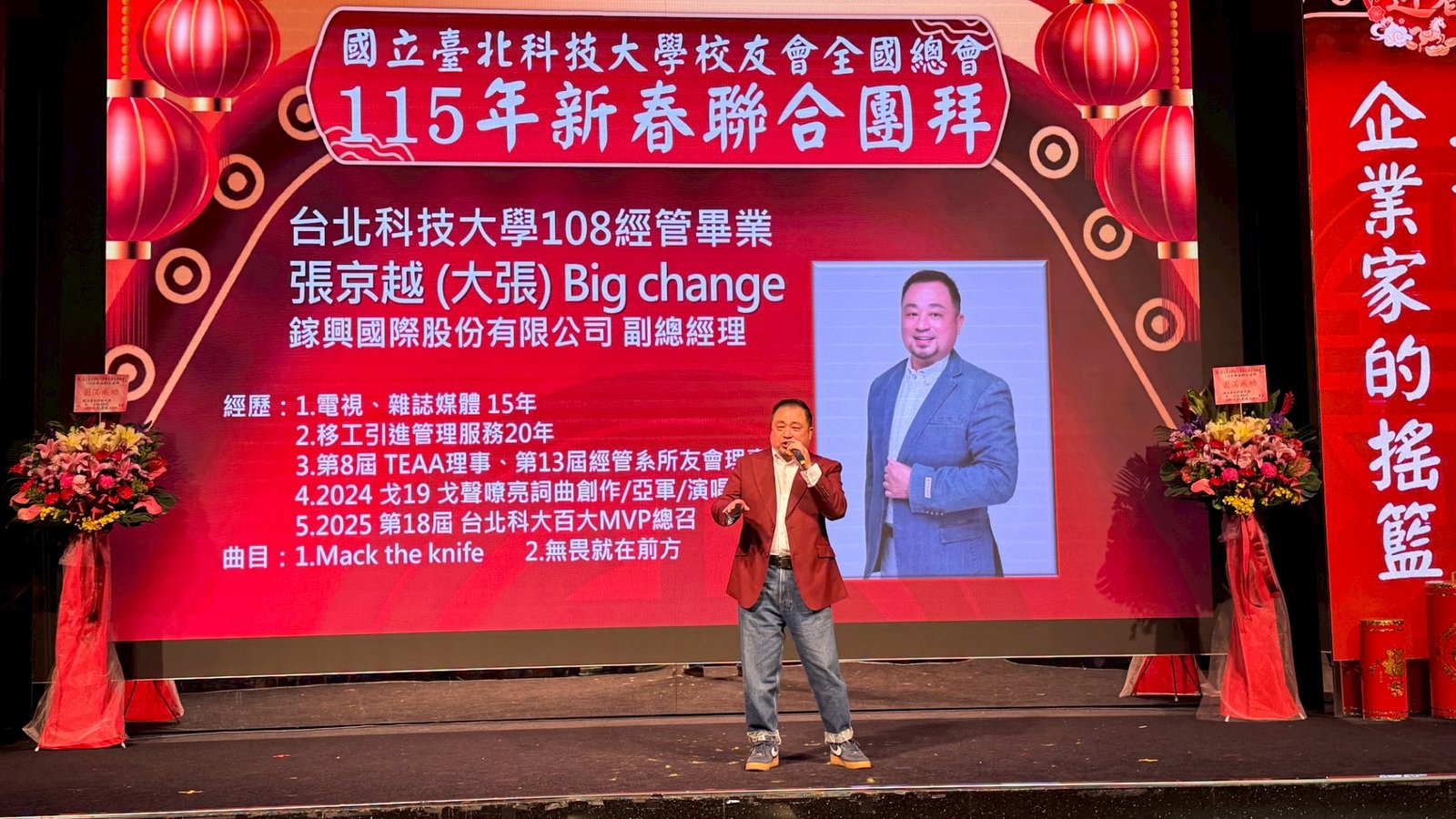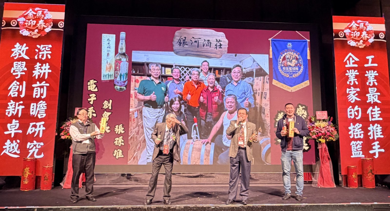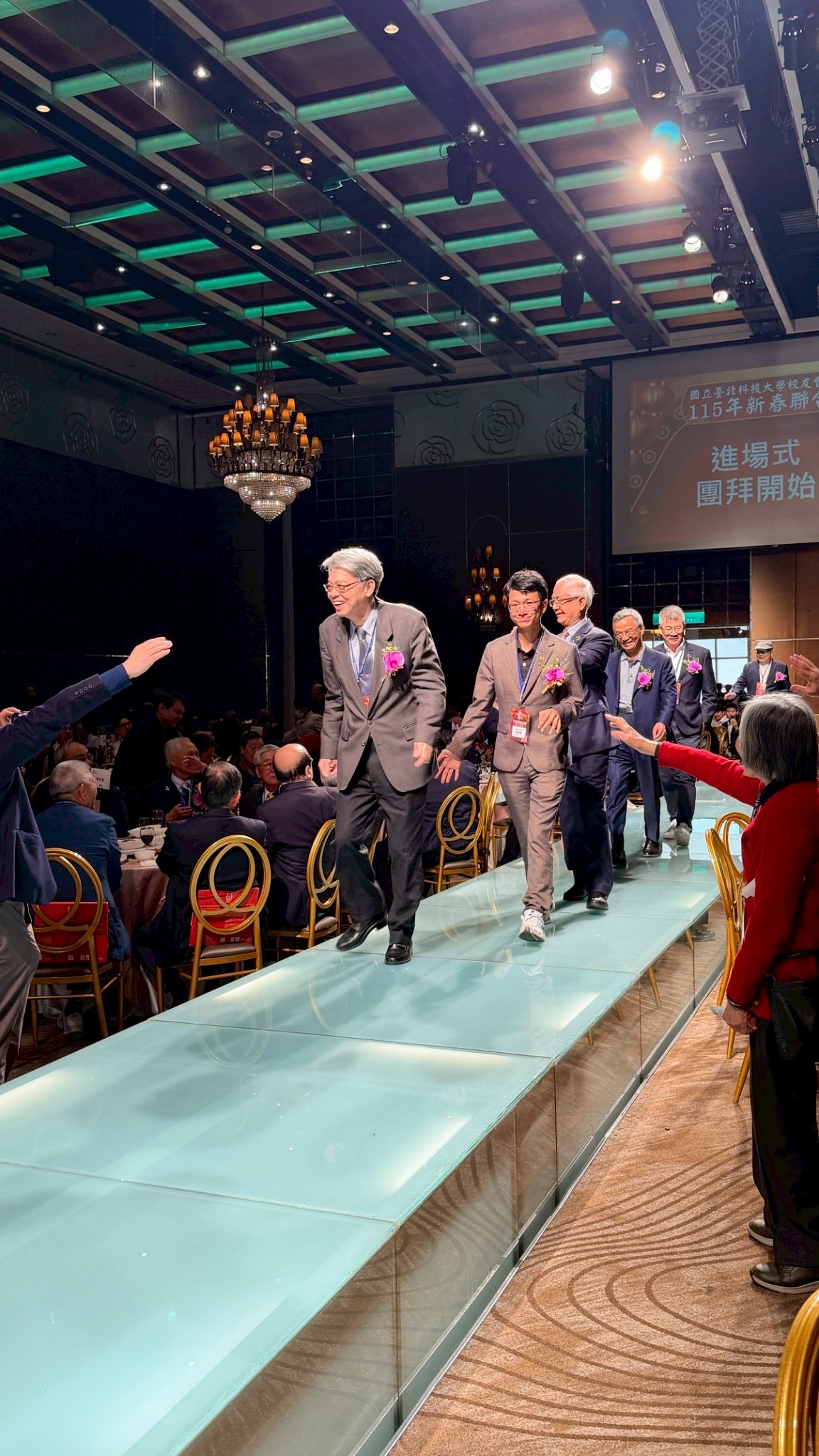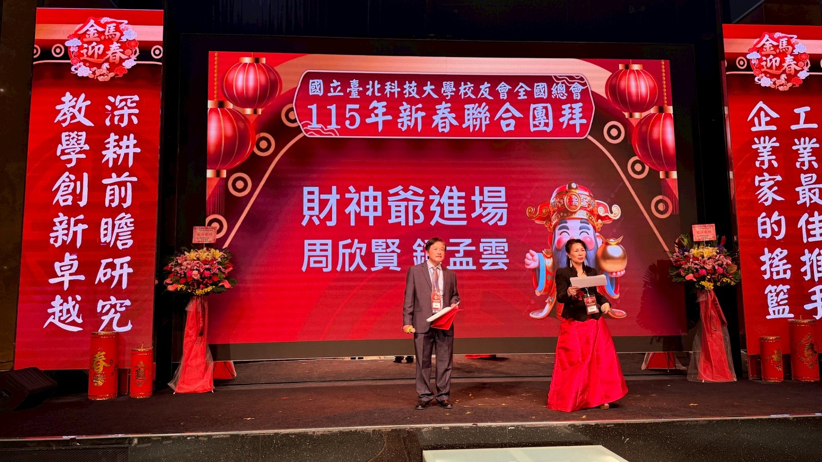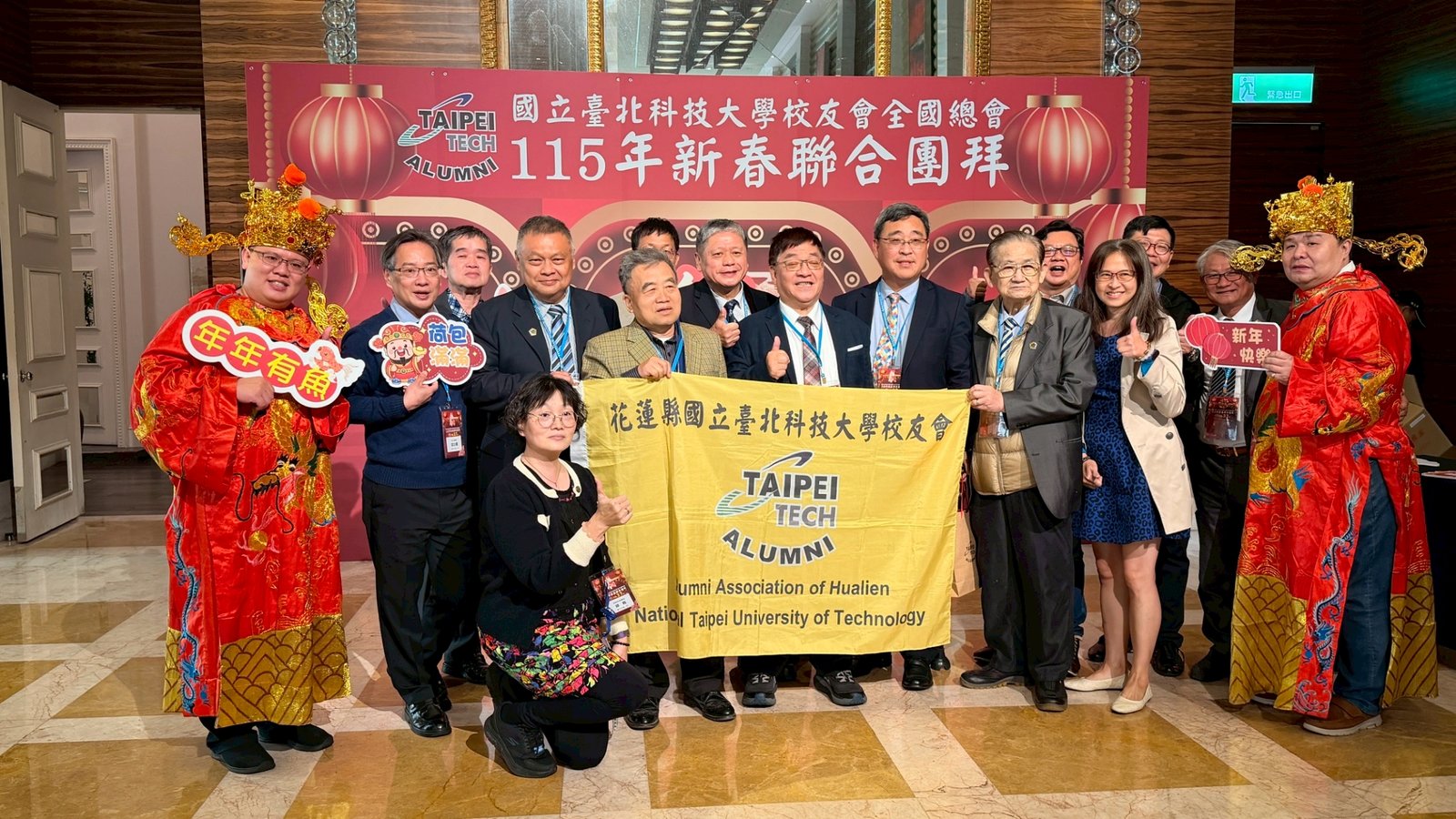 活動 2026 年 3 月 8 日 國立臺北科技大學校友會全國總會 115年新春聯合團拜 時間:115年3月7(星期六)12:00 地點:大直典華6樓 花田盛事廳 台北市中山區植福路8號 圖文/產業推手編輯部整理 凝聚北科力量 共迎嶄新一年 在上午理監事會議及會員代表大會順利完成後,來自全省各地的校友、師長及貴賓齊聚一堂,舉行「115年新春聯合團拜」。以溫馨熱鬧的團拜活動迎接新的一年。活動除新春祝福外,也透過音樂表演與交流聯誼,展現北科校友團結互助的精神。 舞獅迎春 揭開團拜序幕 活動在熱鬧的舞獅表演中揭開序幕。由北科附工動力機械團隊帶來的舞獅演出充滿活力,象徵新年的喜氣與祝福。表演者長期刻苦練習,在舞台上展現青春與力量,也為整場活動注入滿滿能量。隨後財神爺進場,為現場帶來象徵財運與好運的祝福。貴賓及各地區校(系)友會理事長,走上星光大道,大進場的氣勢,接受全場的歡呼,全體在台上舉杯敬酒,象徵新春熱鬧的氣氛。 貴賓雲集 北科校友情誼凝聚 校友總會新春團拜在溫馨熱鬧中展開。總會長致詞時表示,非常高興能與各地校友齊聚一堂,共同迎接新的一年,並向所有蒞臨的貴賓、師長與校友表達誠摯歡迎與新春祝福。今年團拜活動貴賓雲集,除母校校長任貽均親自出席外,精英會理事長曾國華、總統府資政沈榮津校友、台北市副市長李四川以及新北市議員戴瑋姍等也到場共襄盛舉,使活動更添光彩。總會長表示,來自各地校友齊聚一堂,正是北科大家庭最珍貴的時刻,也讓團拜宛如一場北科人的大團圓。他指出,北科大長年培育科技與產業人才,校友遍布科技、企業與公共服務等領域,許多人在產業界扮演關鍵角色。校友總會的重要使命,就是凝聚各地校友力量,促進校友與母校及彼此之間的連結,共同為社會與產業創造更大價值。適逢馬年,總會長也期勉校友如駿馬奔騰,在各自領域持續努力,同時保持穩健與從容的步伐,讓北科人的影響力持續擴展。 致詞完畢後,總會長捐贈新台幣100萬元,作為校務發展基金。這項捐贈不僅代表校友對母校的支持,也象徵北科校友回饋教育、支持人才培育的精神。 母校展望 穩健推動校務發展 任貽均校長在致詞中表示,每年的校友總會新春團拜都是非常重要的時刻。來自各地區、各分會以及各系所的校友齊聚一堂,不僅是校友情誼的象徵,也是母校與校友之間最緊密的連結。校長提到,自己在2月1日正式接下校長重任後,隨即迎來馬年的開始。未來將與副校長及行政團隊共同努力,以穩健的步伐推動校務發展,期盼帶領北科大邁向新的高峰。他也感謝校友長期對母校的支持與關心,並期望未來在校友力量的協助下,持續深化產學合作與國際交流,讓北科大的影響力持續提升。 精英會曾國華理事長在致詞中,也向所有校友表達新春祝福,期盼在新的一年裡,校友事業順利、家庭幸福,同時祝福母校校務蒸蒸日上。 校友才藝展現 午宴氣氛熱絡 午宴活動中也安排多場精彩表演。傑出校友卓世雄董事長與夫人帶來歌唱演出,以動人歌聲與校友分享音樂之美。卓世雄校友畢業於紡織工程科,目前為知勉工業董事長,並成立慈善基金會長期投入公益,展現企業家回饋社會的典範。此外,被譽為「北科之光」的世界舞后郭淑貞也登台表演,優雅舞姿贏得滿場掌聲。 公益義賣與籃球隊成立 展現校友活力 活動現場也舉辦銀河酒莊「感恩釀」公益義賣活動,透過校友企業推出的產品,將所得用於成立「台北科技大學校友籃球隊」活動基金。該球隊由曾在校隊或職業聯賽效力的校友組成,未來將代表北科大參與台北聯大四校籃球賽,並透過慈善籃球賽,提升校譽與推動公益活動。 校友張京越則帶來精彩演唱,以渾厚歌聲炒熱氣氛。而雄發樂團薩克斯風的演出,更為午宴增添懷舊氛圍,多首經典歌曲讓校友們沉浸在音樂之中。校友「台北市李四川副市長」因公務繁忙,此時親臨會場,頓時引起騷動,他在致詞時表示,希望有機會能擴大為新北市民服務。而校友也爭相與他合照,李副市長成為人形立牌的有趣場面。北科人情誼 延續不斷 隨後卡拉OK時間,理事長們開唱〈你是我的兄弟〉,溫馨的歌聲象徵校友情誼歷久彌新。在活動尾聲,總會長率領工作團隊上台致意與合唱「期待再相會」,為本次新春團拜畫下圓滿句點。透過這場溫馨又熱鬧的聚會,北科校友再次凝聚情感與力量。未來,在母校與校友總會的共同努力下,北科人的影響力將持續在產業、科技與社會各領域發光發熱,共同迎向更加精彩的一年。 分享