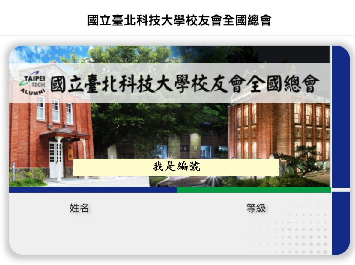 申請校友卡須知申請資格:需為北科大畢業之校友 *校友卡面請參閱下圖 點擊前往申請校友卡 申請入會方式及入會費一、入會申請應完成以下程序:填寫入會申請表(點我前往連結),並經本會理事會審核通過。收到本會寄發同意通知書並完成繳交入會費。取得入會收據確認完成入會程序。二、入會費:個人會員:NT$1000元。贊助會員:NT$3000元。永久會員:NT$10,000元。 會員常年會費個人會員及贊助會員:應每年繳交常年會費(NT$1000元),以確認會員資格。永久會員:無須繳費。 校友總會資訊臺北科技大學校友總會Tel: (02)2721-3948E-mail: ntutaatw@gmail.com
